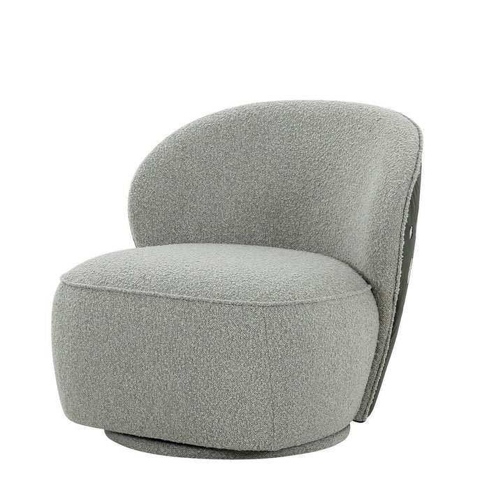 This sophisticated Curved shape Swivel Chair has Glam apperance and elegant style. The back has contrasting fabric that makes this chair an absolutely perfect accent for our Taranto Sofa.