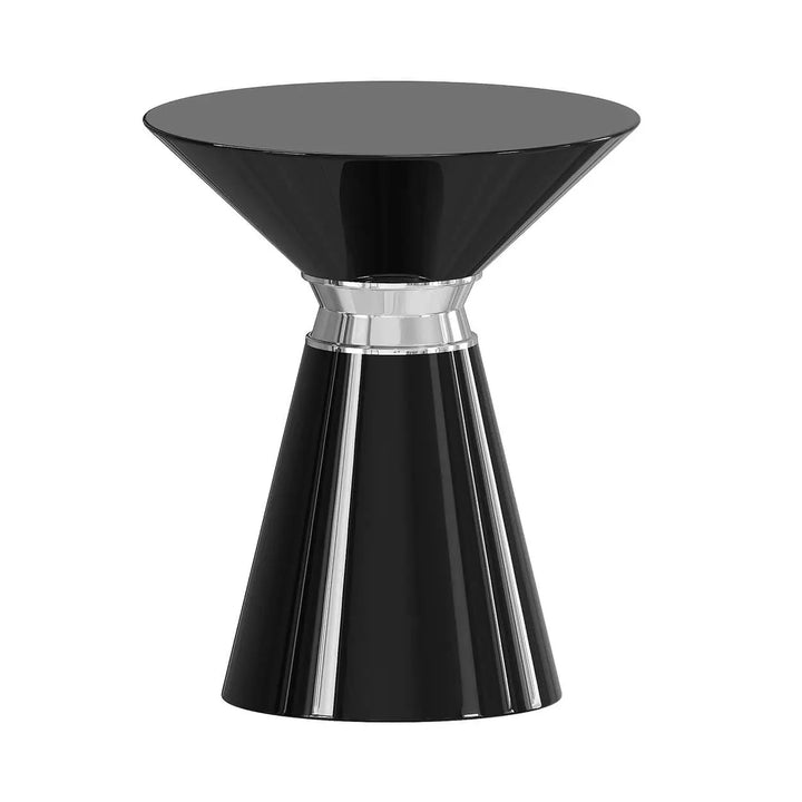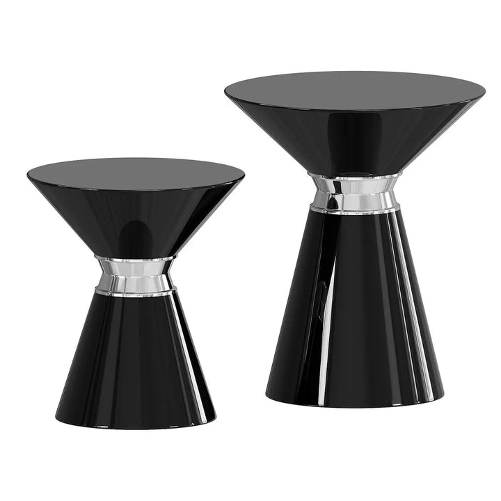 The Trezano Rosa is a luxurious End table, meticulously crafted from walnut wood veneer enhanced with a high-gloss acrylic polyester coating. Its stainless steel elements are elegantly finished with titanium gold. Series of modular small tables with conical metal bases, perfect for any occasion. Many sizes available and an infinite choice of finishes: choose the height of the cone base, the metal spacer, the upper module and the top to create a unique table.