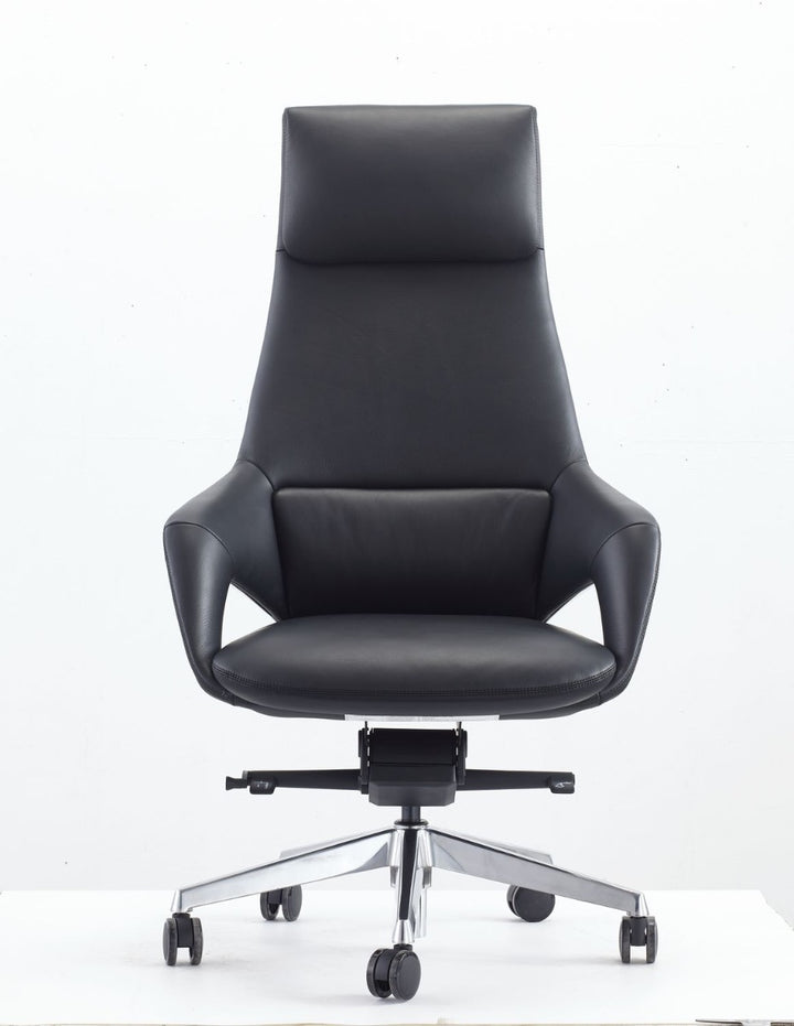 The Wall Street is an extremely stylish office chair that has all the features that you would expect from a comfortable seating option. This black genuine leather office chair offers essential customization like an adjustable height, recline, and carpet rolling wheels. Sure to fit any style, the high back gives an executive feeling while the simple upholstery offers contemporary style.