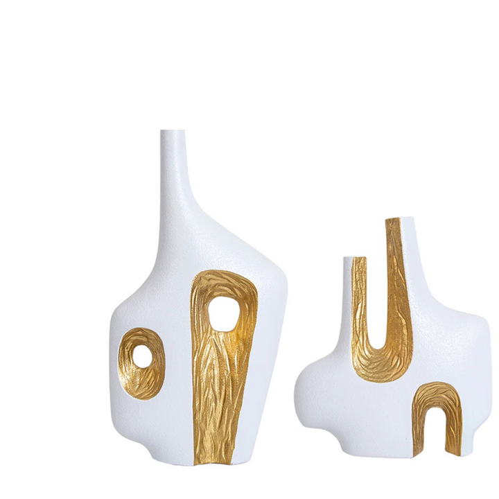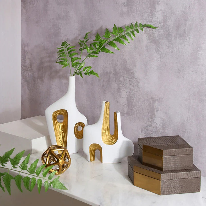 White & Gold Notch Vase Set